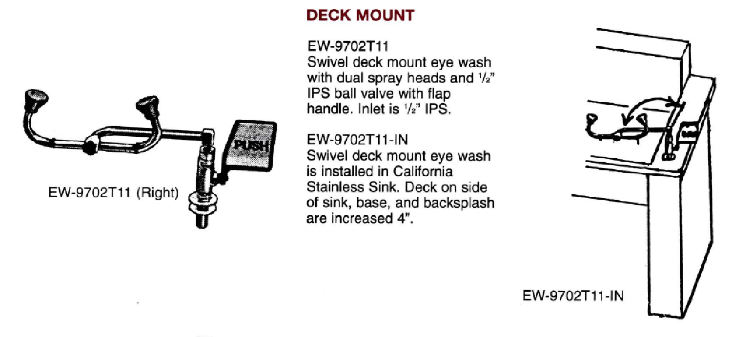 Wide Backsplash Returns, 5" deck, are ordered separately if individual deck faucets are ordered without Plumbing Assembly. (Models PA1, PA2, PA3, or PA4.)