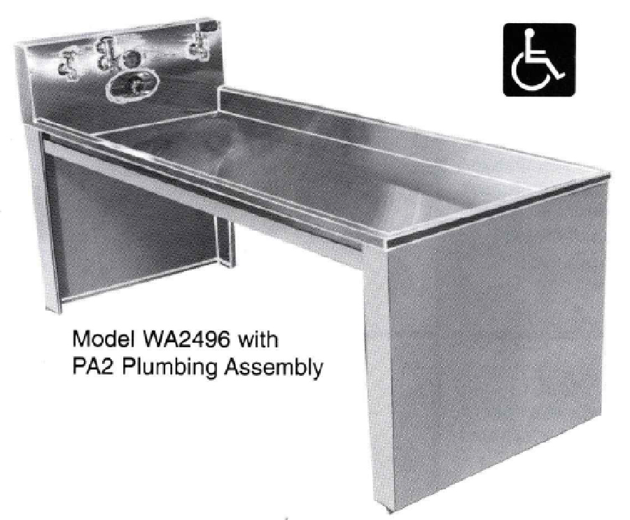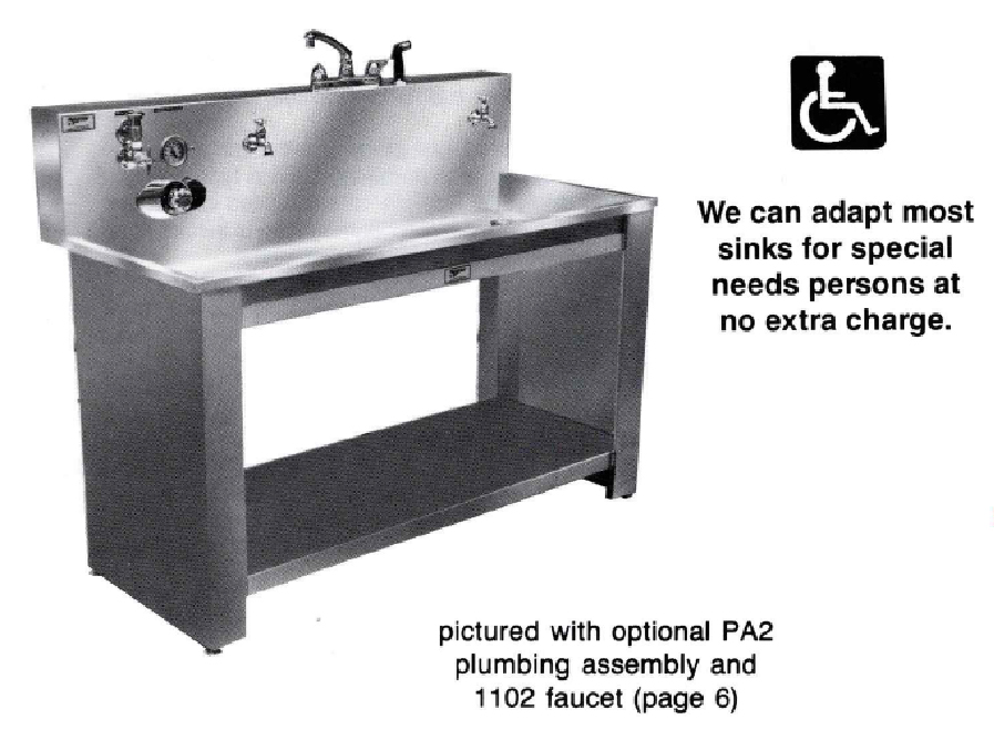 California Stainless takes pride in out ability to meet your precise specification. Custom design is our specialty, Most any sink can be modified in sixe to meed your available production space, with plumbing fixtures located for your specific requirements. Wheelchair access sink modification available.